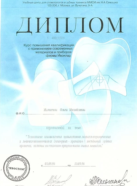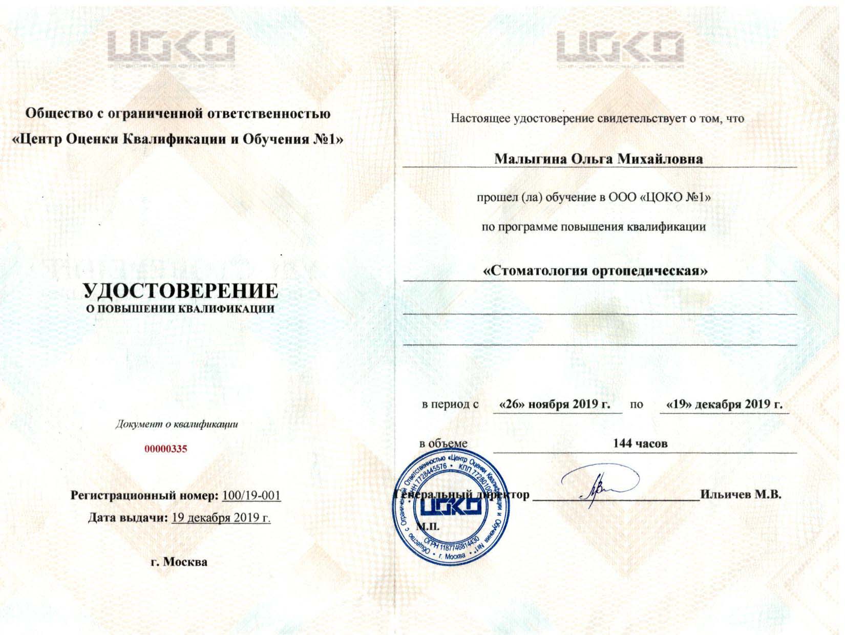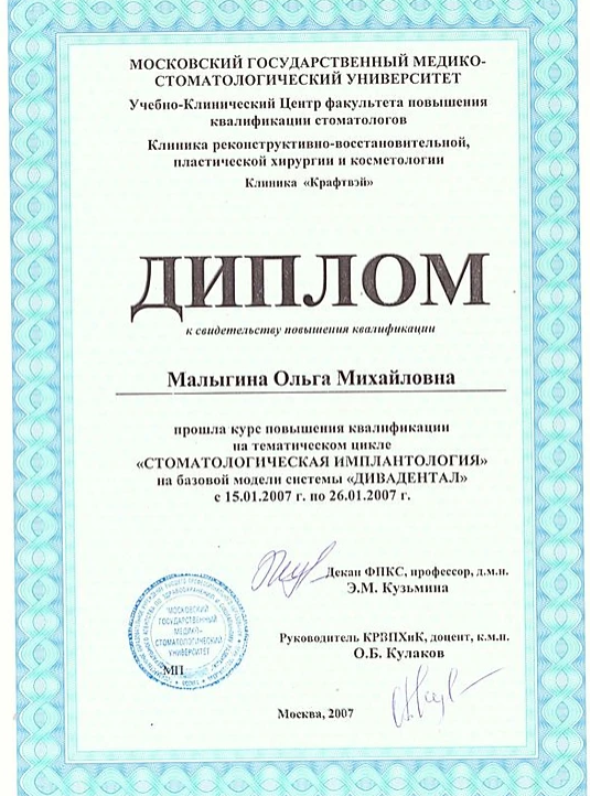 Повышение квалификации ортопедическая стоматология « Российская медицинская Академия последипломного образования Росздрава»