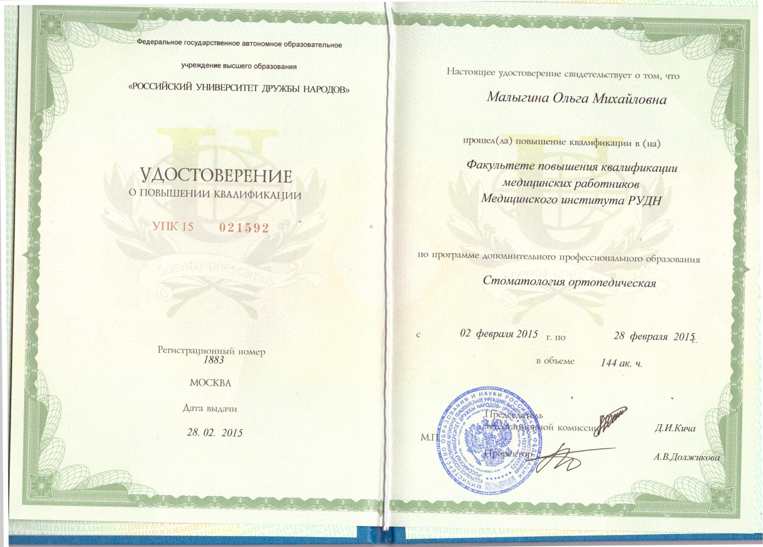 Повышение квалификации Стоматология ортопедическая « Российский университет дружбы народов»