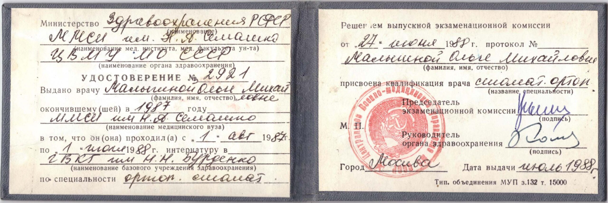 В 1982 окончила Московский государственный медико-стоматологический университет Евдокимова.